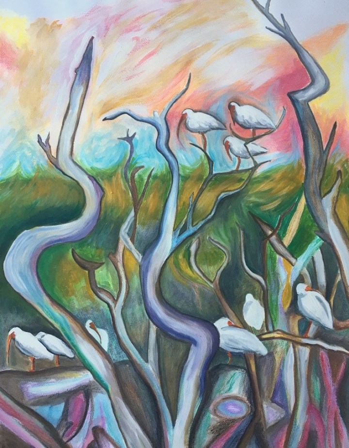 Florida swamp with ibis March 23, 2017 By The Spaced-Out Scientist Pastels and acrylic painting on paper Dimensions: 22 x 30 inches Related