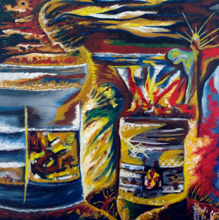 Oil drums burning March 23, 2017 By The Spaced-Out Scientist Oil painting on canvas Dimensions: 30 x 30 inches Related